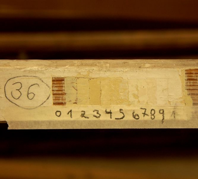 2. Anlegen einer Farbtreppe mit Hilfe eines Skalpells (Stratigrafie), um den Schichtenaufbau des Fensteranstrichs zu dokumentieren