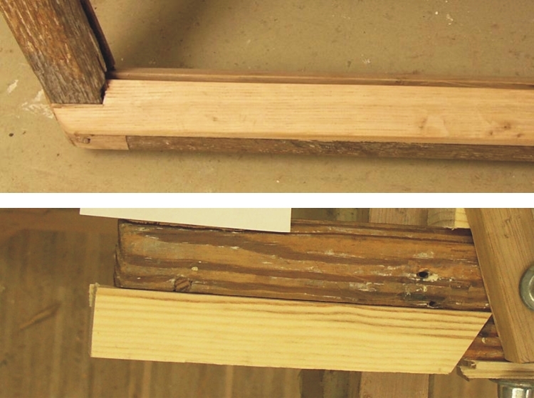 eines neuen Holzes mit einer Überblattung. Häufige Reparaturstellen: