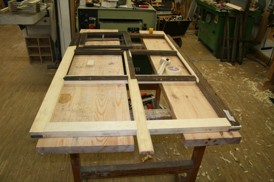 Ersatz der Wetterschenkel oder Rahmenquerholzstücke. Die neu