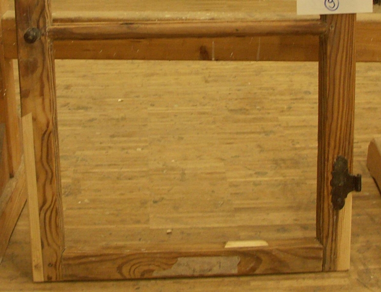 Nach Abnahme der Farbe mit Hilfe eines Spachtels und eines Heißluftföns auf geringer Stufe, um das Holz nicht anzubrennen, wurde das Fenster mit einem 80er Schleifpapier behandelt. Die Profilierung - Halbrundstab an Sprosse und Flügel - wurde lediglich mit einem Zieheisen bearbeitet. Erst nach Abnahme der Farbschichten zeigte sich das vollständige Ausmaß der Schädigung. Bei den kleineren Fehlstellen an den Rahmenhölzern im Bereich der Vorreiber und des Wetterschenkels wurden nach dem Ausschneiden der geschädigten Bereiche neue Holzteile eingesetzt. Das neue Holz wurde unter Berücksichtigung der historischen Maße passgenau zugeschnitten und aufgeleimt. Danach wurden die Teile mit dem Hobel angepasst und geschliffen. Anschließend begann das Einsetzen der Gläser mit Altglas.