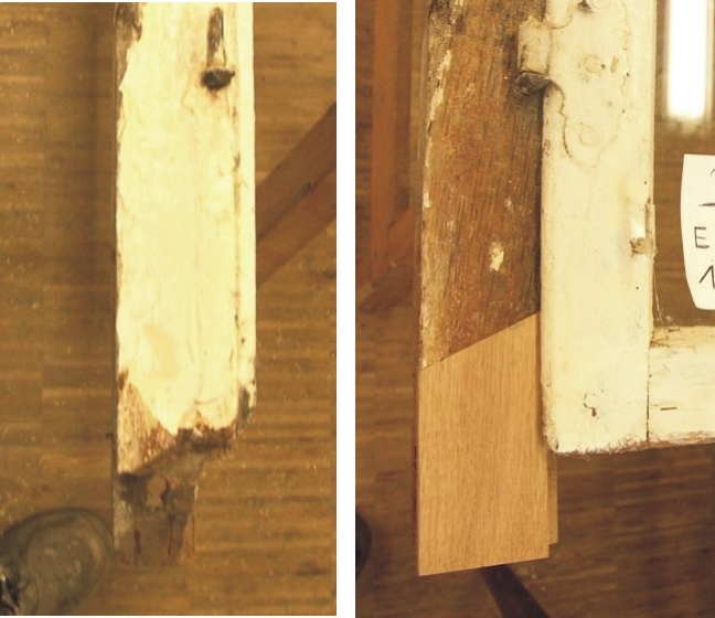 5. Neue Holzteile werden in die fehlenden Stellen eingesetzt, gehobelt und