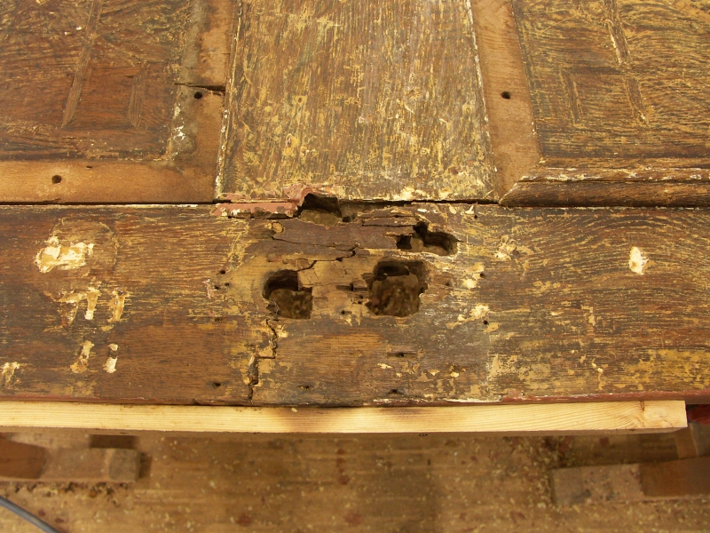 neuen Holzes ausgefüllt. Fehlende Füllungsleisten