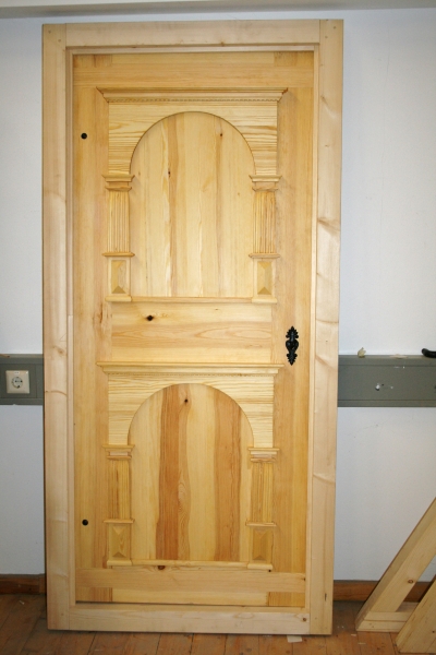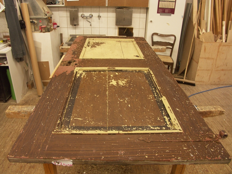 Rekonstruktionen des Türblattes der Renaissance mit Pilastern und Arkadenfeldern wurden in Gesellenprüfungen 2015 und 2016 von zwei Tischlerlehrlingen des Fachwerkzentrums angefertigt.