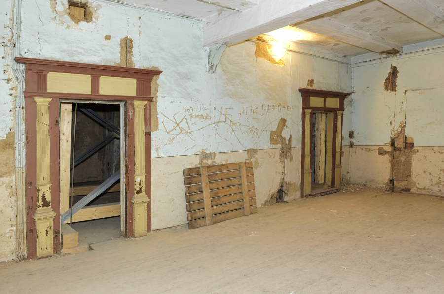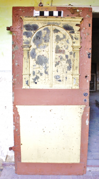 Auf zwei Türblättern im 1. Obergeschoss konnte im Zuge der Restaurierung und Freilegung eine bauzeitlich sehr aufwändige Malerei nachgewiesen werden. Erste Freilegungsproben auf den Füllungsfeldern wiesen bereits auf eine figürliche Ausmalung hin, aber erst nach der Aufarbeitung konnte der gesamte Umfang des historischen Wertes nachvollzogen werden (weiteres zur Ausmalung siehe Kapitel 5.2).