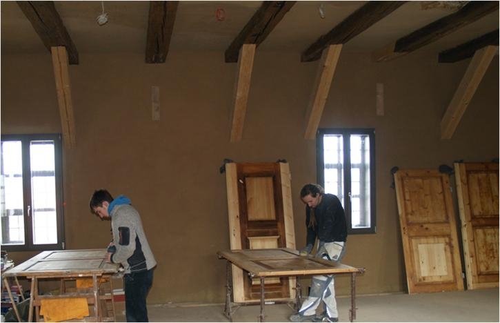In den Qualifizierungs-Seminaren erfolgte die Neufassung der Türen mit Teilnehmern aus Syrien, Afghanistand, Iran, Irak und der Jugendbauhütte der Deutschen Stiftung Denkmalschutz. Jede Tür stellt somit ein Unikat in ihrer Gestaltung dar.